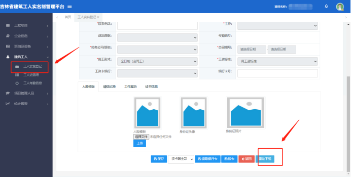 1,登录吉林省建筑工人实名制管理平台,点击驱动下载