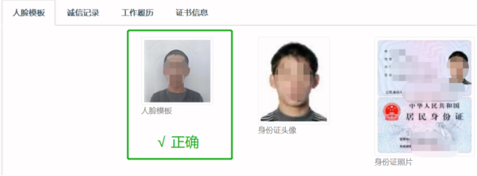 人脸模板照片符合证件照片规范:拍摄正面人脸,背景纯色或白色,人脸轮廓和耳朵在照片内,JPG格式照片在50-150KB之间。